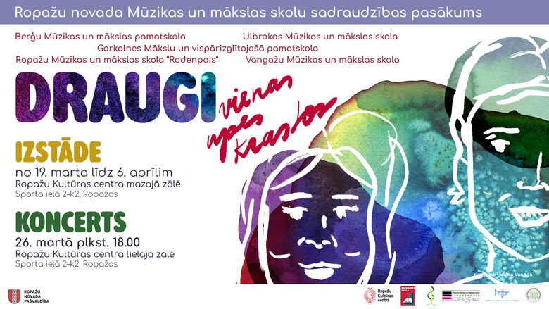 Pavasarī Ropažu Kultūras centrā norisināsies Ropažu novada mūzikas un mākslas skolu sadraudzības pasākums "Draugi vienas upes krastos", kas apvienos izstādi un koncertu, akcentējot radošu dialogu starp mūziku, mākslu un cilvēkiem.